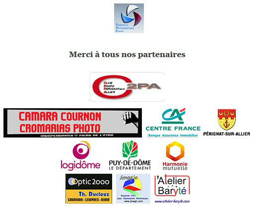 Je tiens a remercier en premier lieu nos partenaires qui s’impliquent financièrement dans cet événement national, les participants qui nous envoient leurs meilleurs clichés, le journal La montagne et Info pour la diffusion des informations, et la Fédération Photographique de France qui nous accorde son patronage.